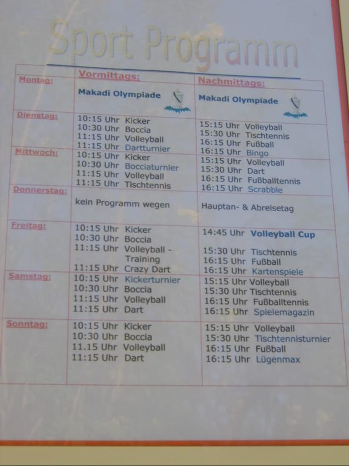 Sport und Animationsprogramm