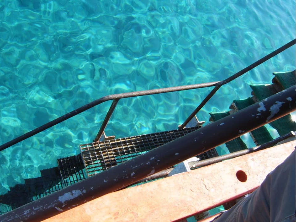 Treppe vom Steg direkt ins Meer ans Hausriff