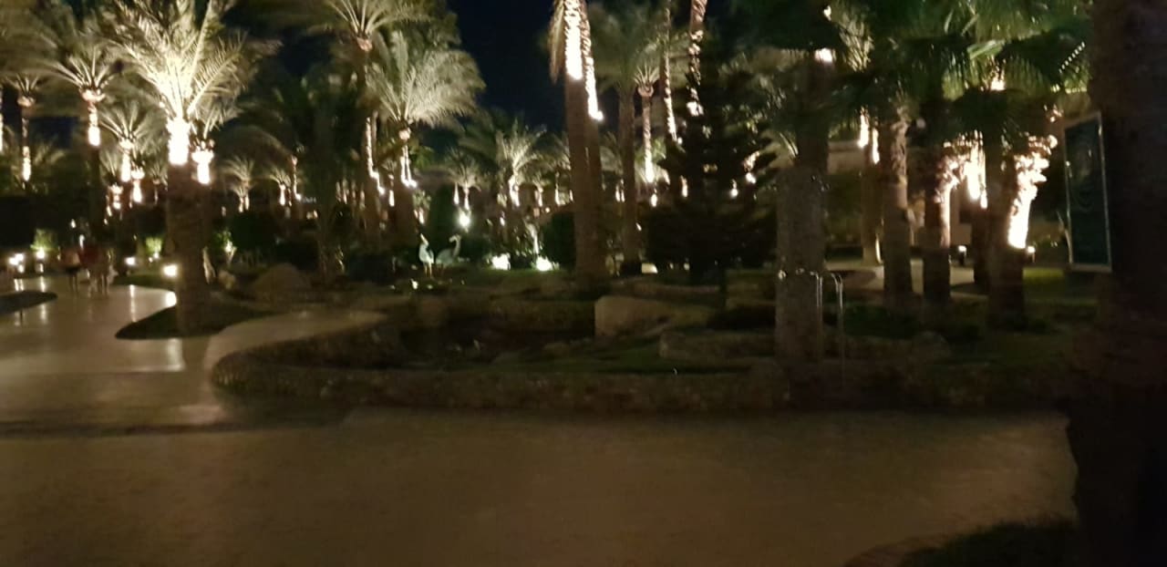 Beleuchteter Garten auf dem Weg zum Zimmer