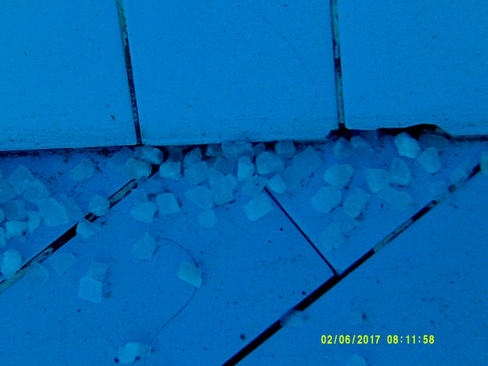 Steine im Pool und Schimmel in den kaputten Fugen