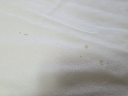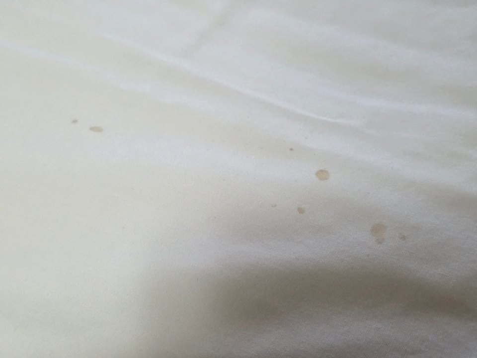 Flecken auf dem Bettbezug. Dies ist nur ein Bsp., beide Betten waren mit div. Flecken überzogen.