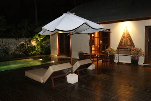 Garten mit Pool in der Nacht