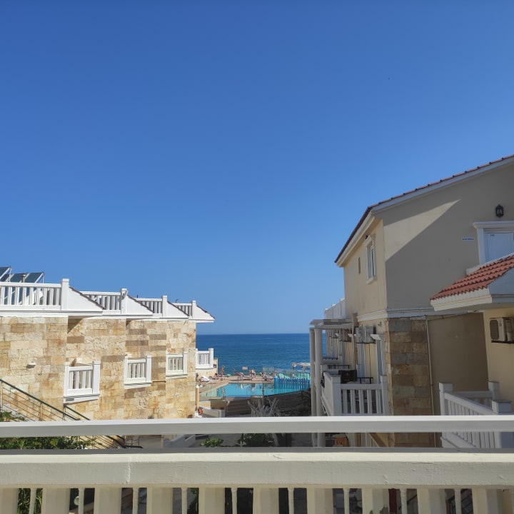 Aussicht vom Zimmer Balkon aufs Meer.
