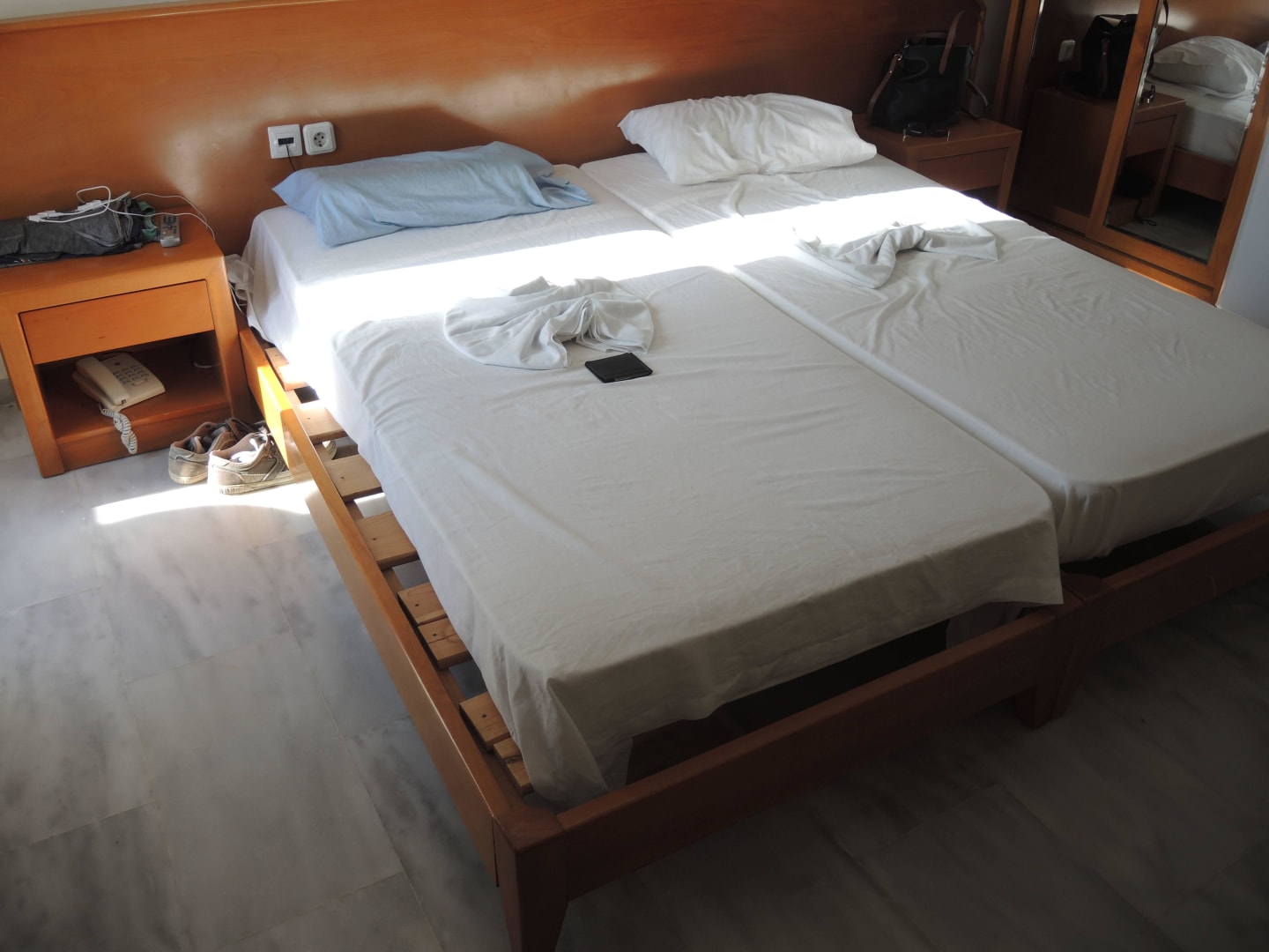 Doppelbett mit zu kleinen Matratzen