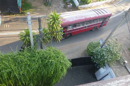 Hoteltor und die viel befahrene Straße.