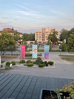Blick vom Balkon geradeaus.