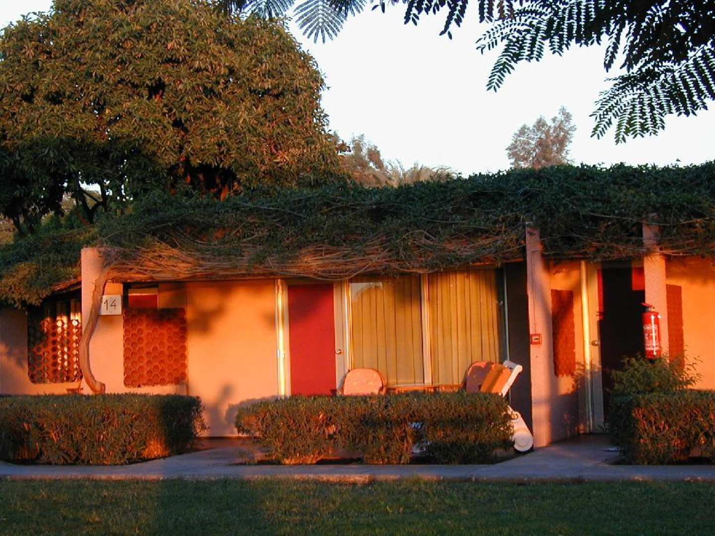 ZimmerterrasseTypische Terrasse eines Doppelzimmers, jeder Bungalow hat 17 Zimmer mit Terrasse, Suiten haben eine etwas tiefere Terrasse