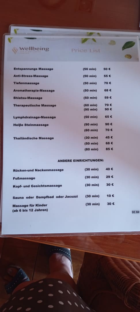 Preisliste Massage