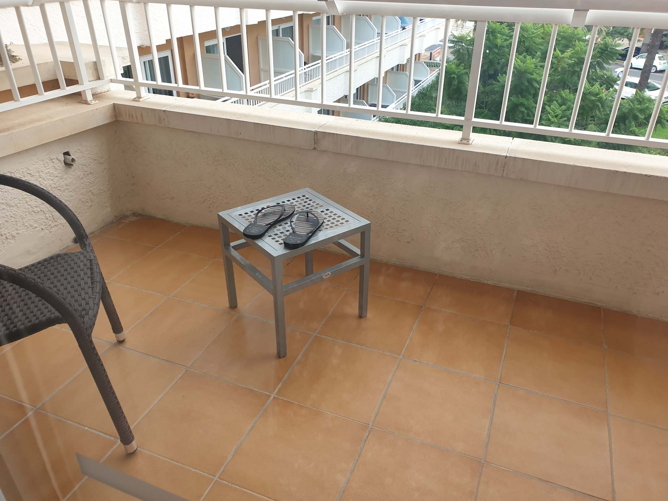 Balkon, mit einem Stuhl und einem kleinen Tisch. Ich glaube mehr muss man dazu nicht sagen ;-)