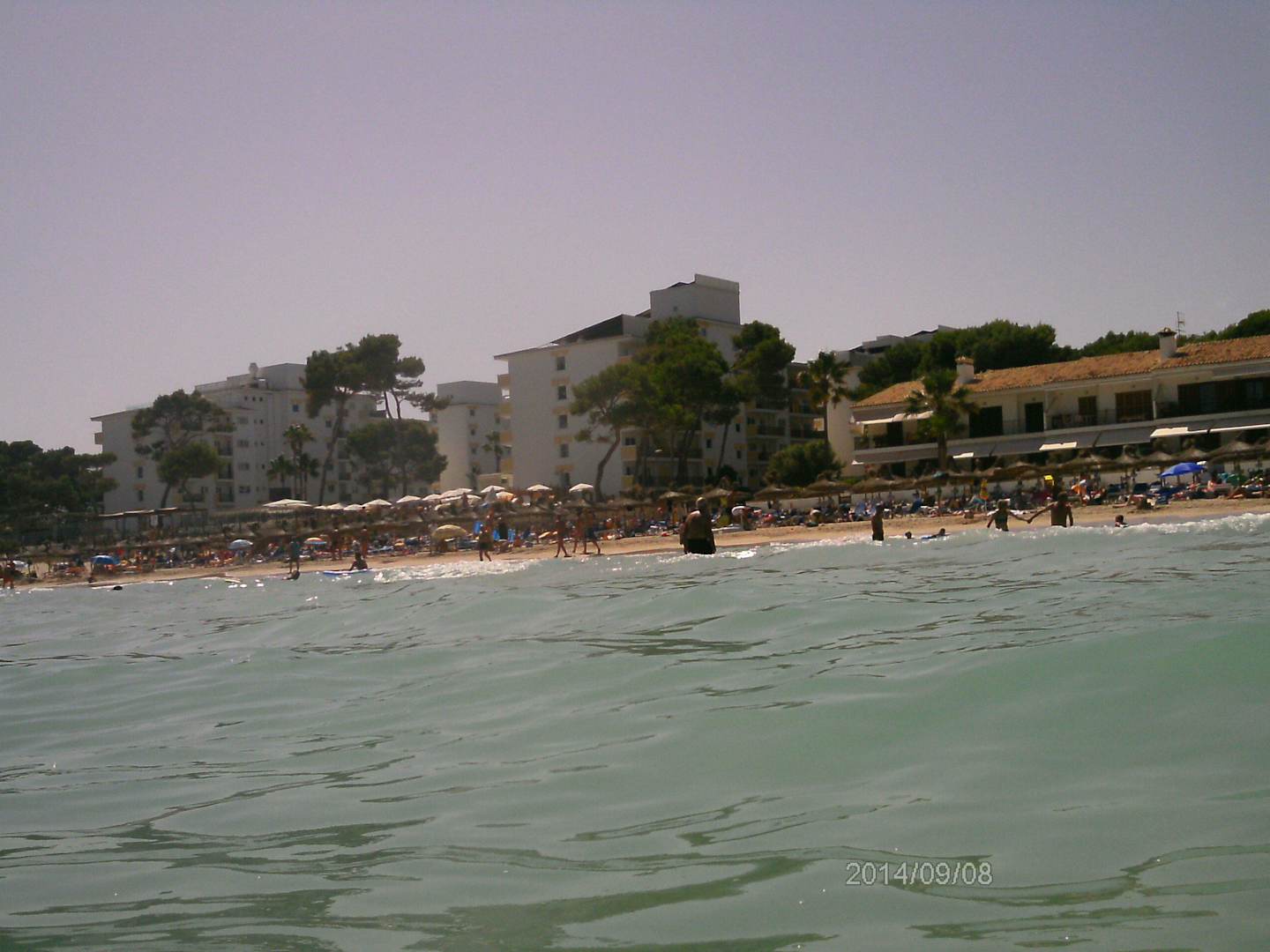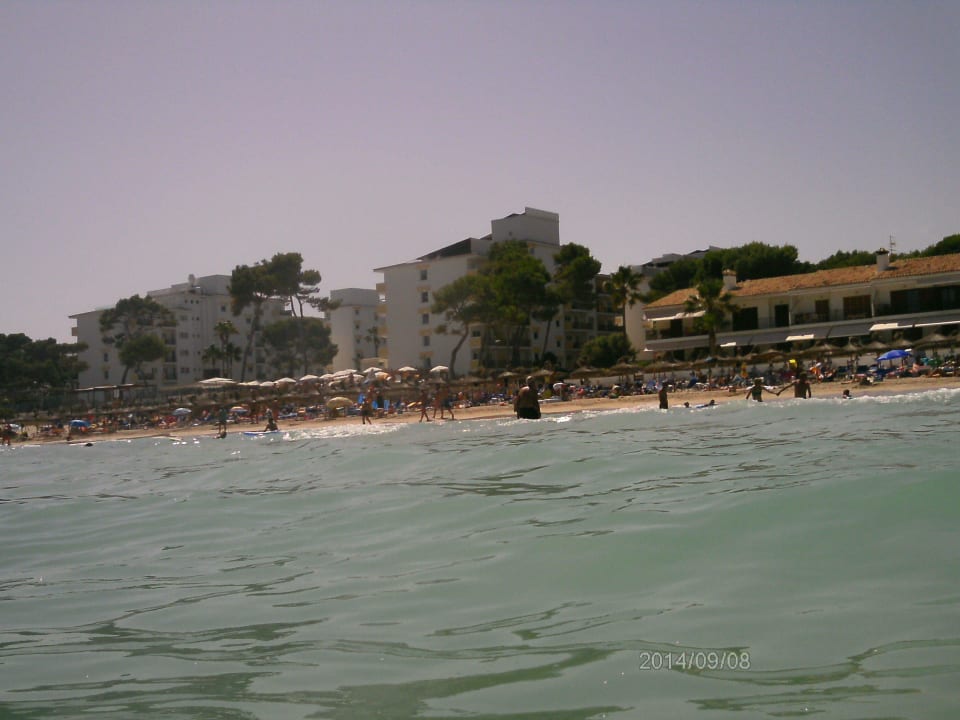 Blick vom Wasser zum Strand