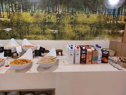 Müsliecke mit vielen verschiedenen Milchsorten, lactosefrei, Vollmilch, fettarme Milch usw