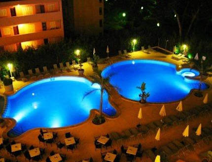 Der beleuchtete Pool im Dunkeln