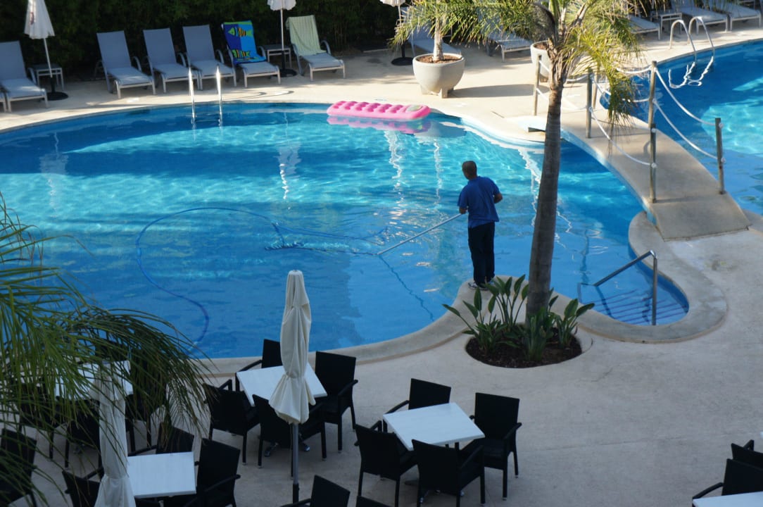 Reinigungskraft am Pool