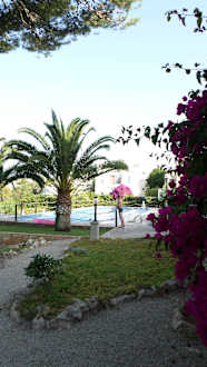 Garten mit Blick auf den großen Pool