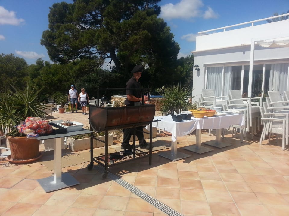 Burger und Hot Dogs auf dem Grill, Mittags.