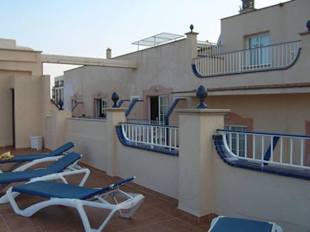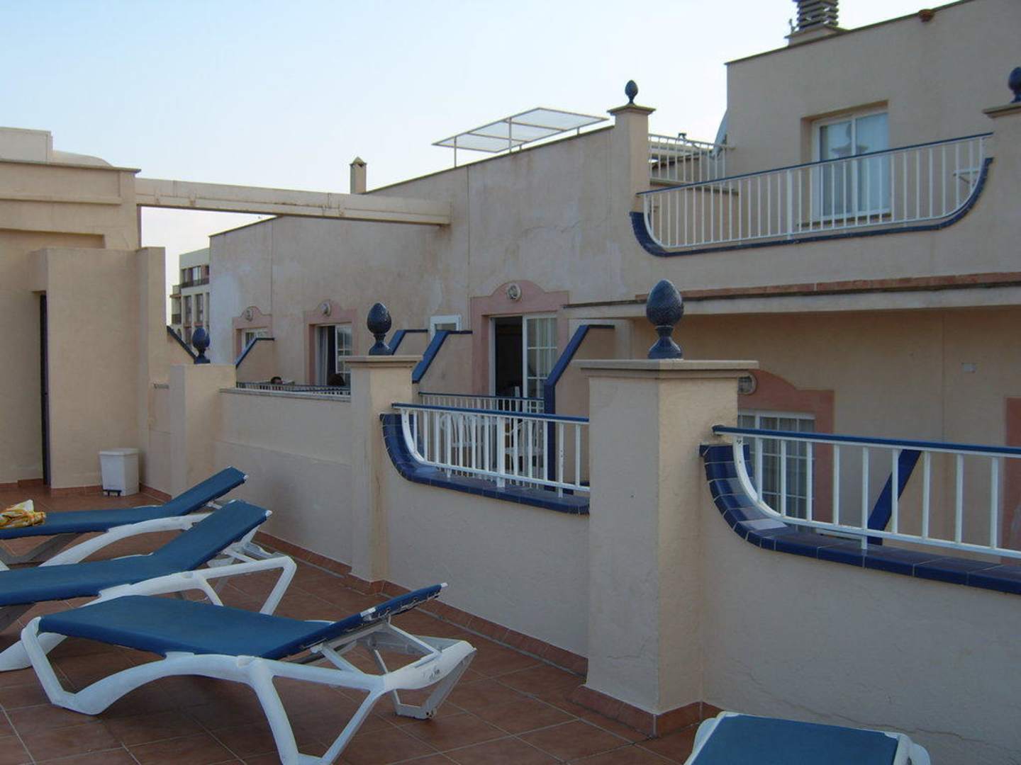 kleiner Abschnitt der kleinen Sonnenterasse auf dem Dach des Stil Horitzo. Einen Pool gibt es hier nicht, nur eine Dusche zum abkühlen während des Sonnenbadens.