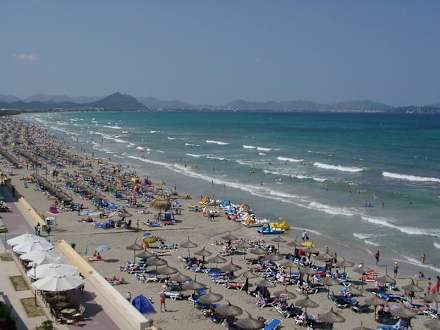 Blick aus Zimmer 407 (links)Spanien, Mallorca, Can Picafort, Hotel Stil Horitzo, 4 Stock, Zimmer 407, Blick vom Balkon, Meerblick
