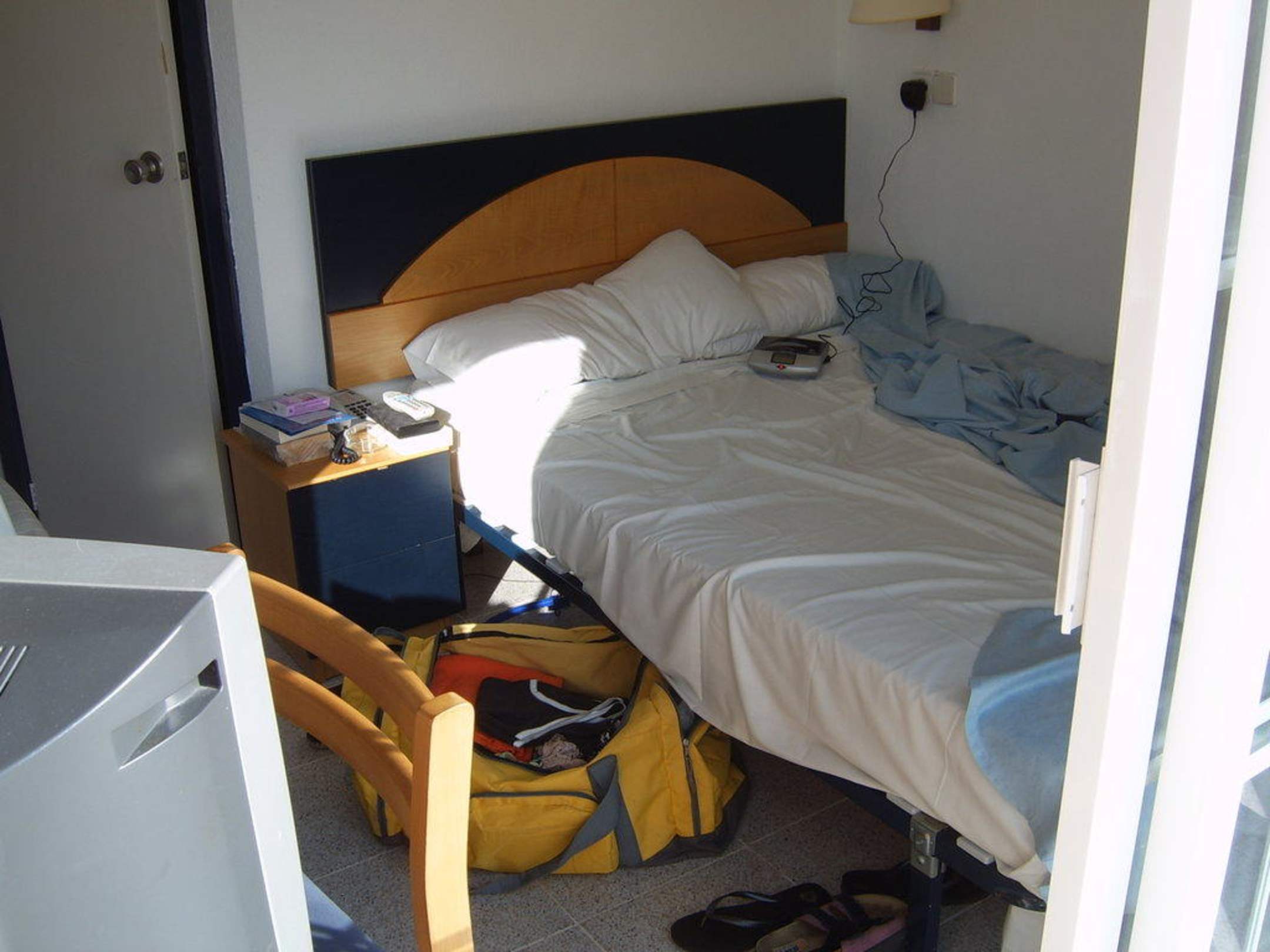 Bett im Einzelzimmer Nr. 402. Es handelt sich um ein französisches Bett.