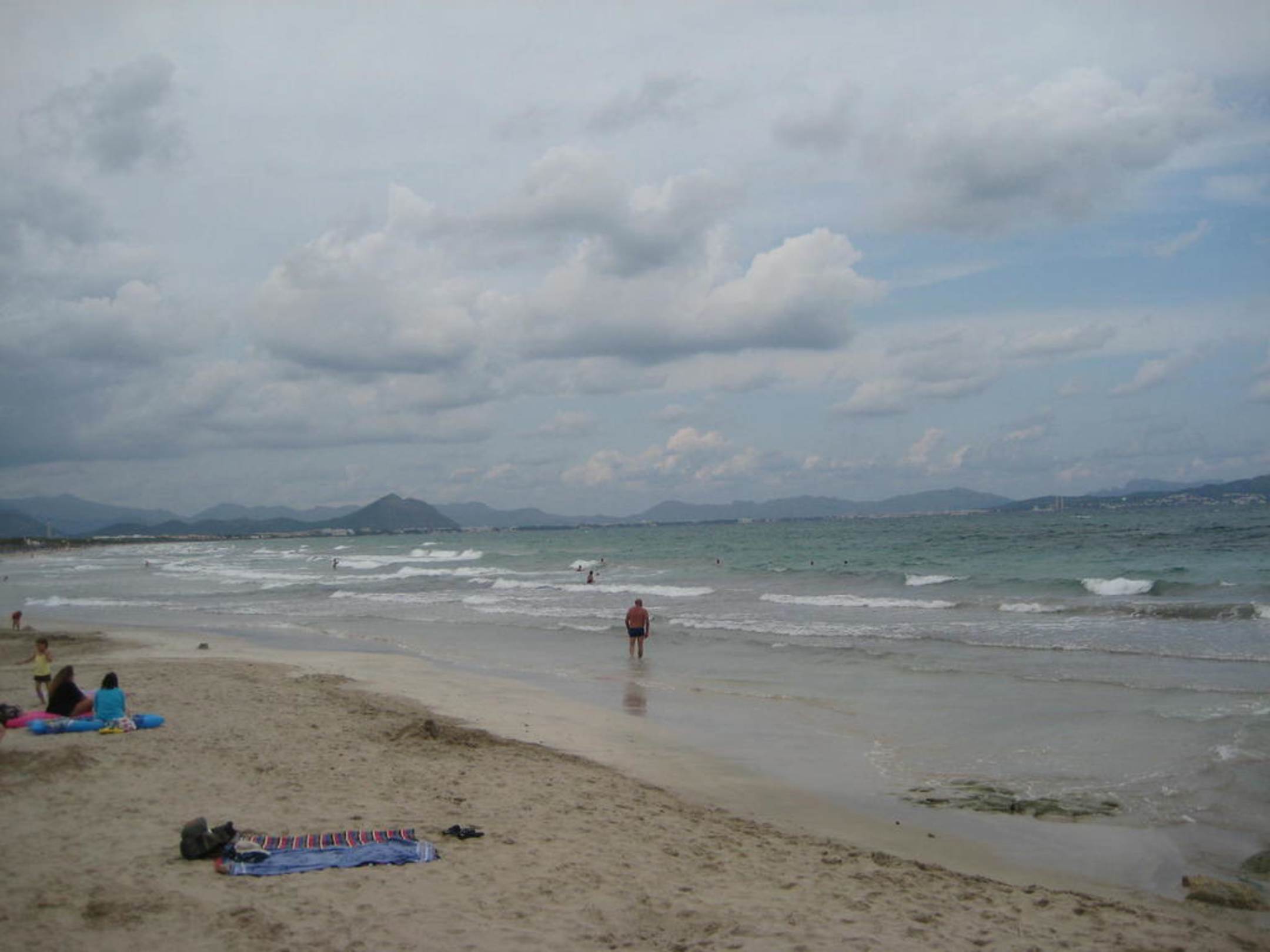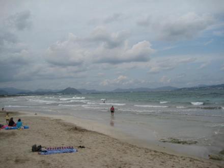 Ruhiger Strand Bucht von AlcudiaEtwas von der Strandpromenade am Strand entlang mit Blick auf die gesamte Bucht von Alcudia