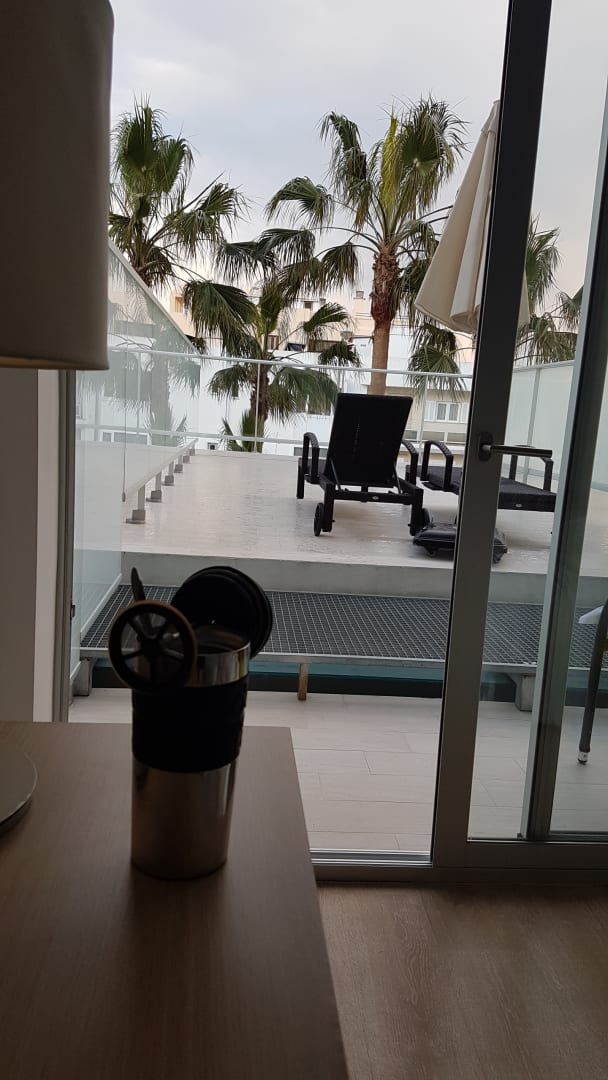 Blick vom Zimmer auf die große Terasse