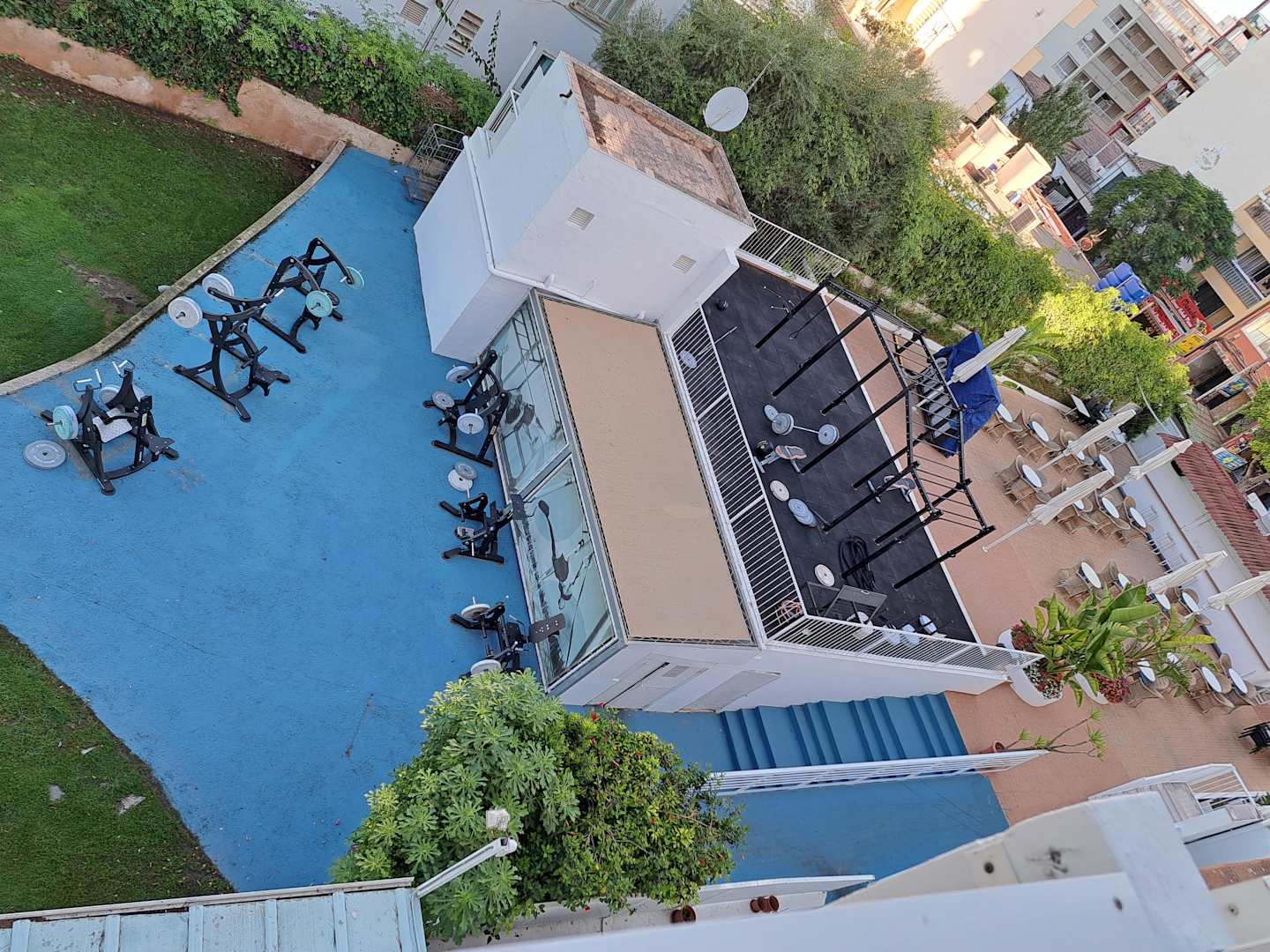 Außensportbereich und angeschlossene Bar