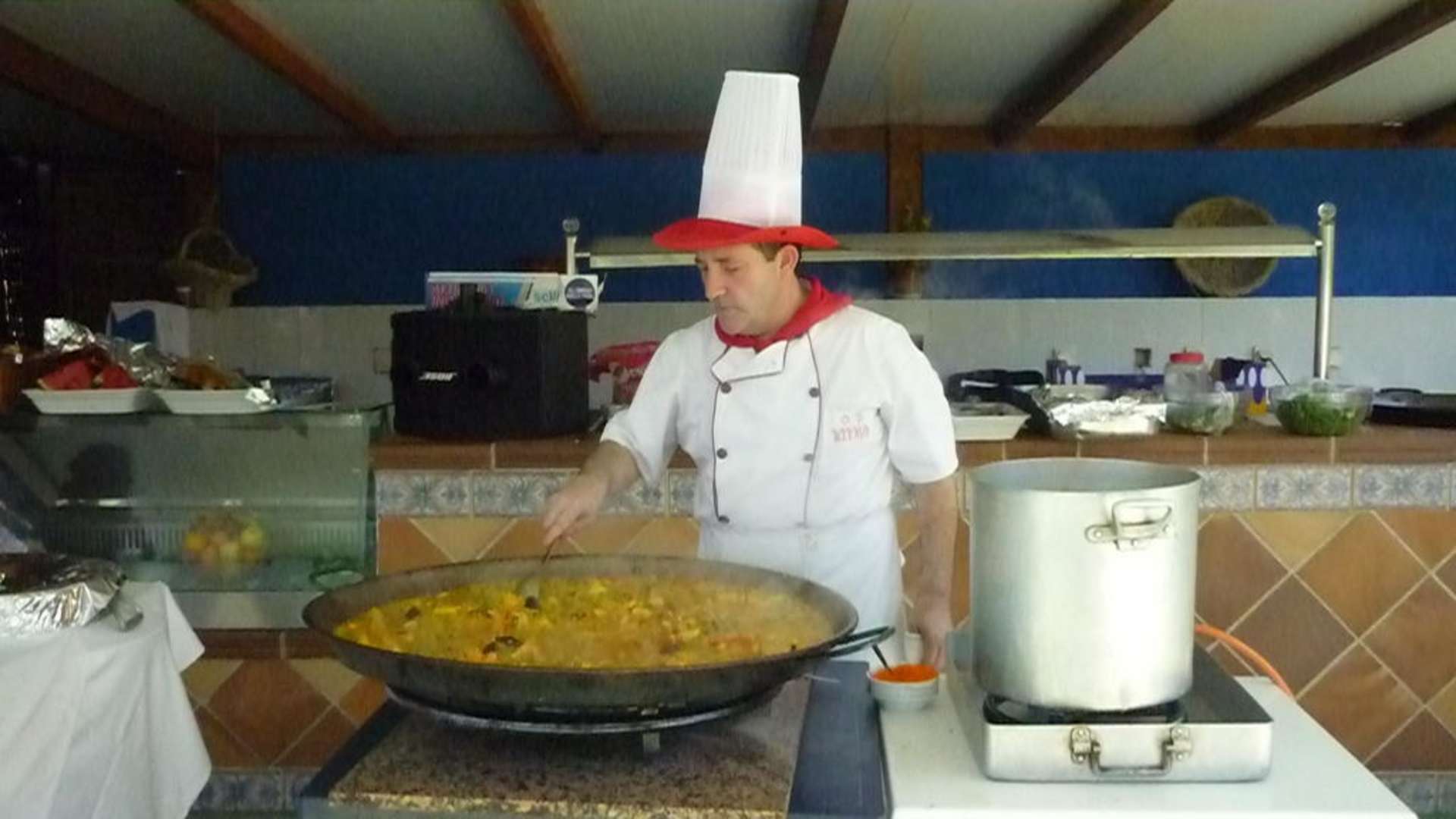 Koch beim Paellazubereitung