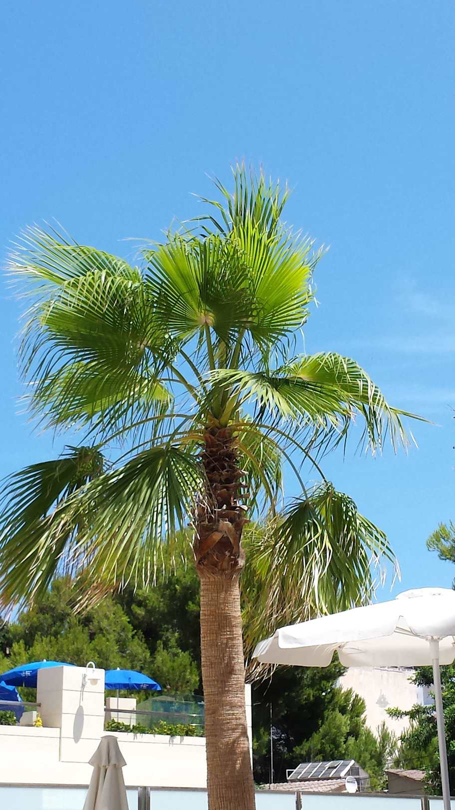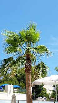 Blick auf Palmen vom Pool