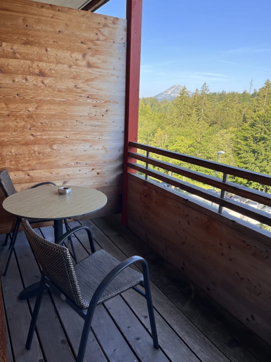 Balkon Blick auf den Parkplatz und den Ötscher