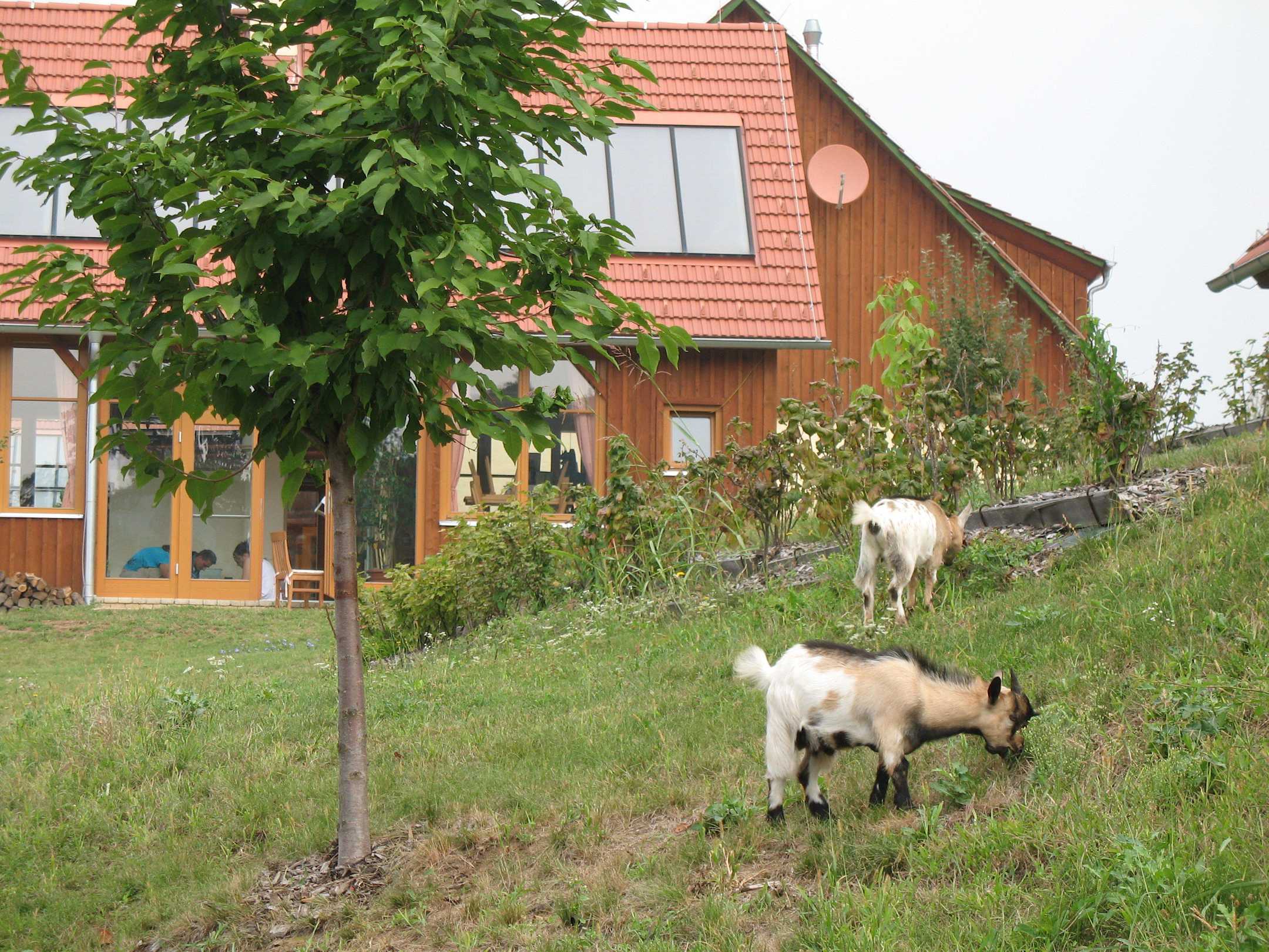 Ziege mit Haupthaus