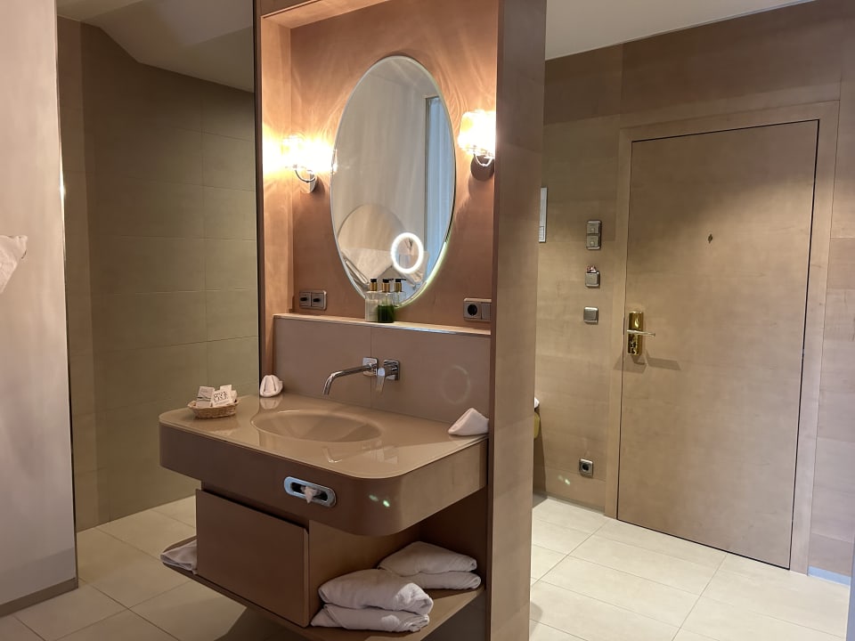 ZimmerGroße Dusche.. dadurch kein Wasser im restlichen Bad nach dem duschen, separate Toilette 👍👍