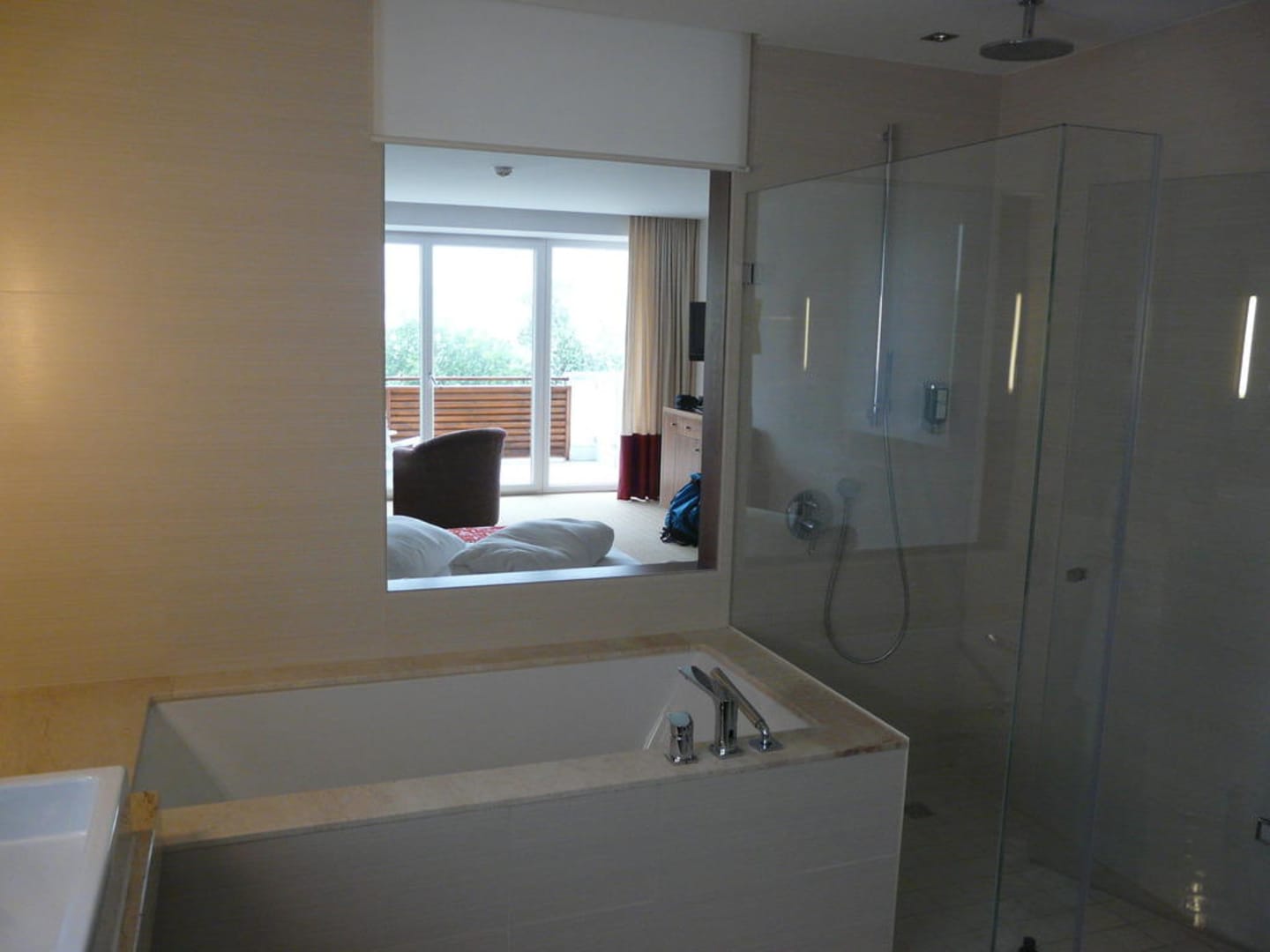 Blick vom Badezimmer in das Wohn-/Schlafzimmer