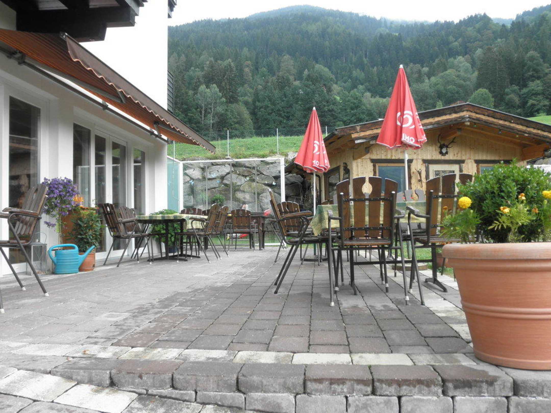 Sitzmöglichkeiten vor dem Hotel