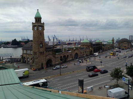 Ein paar Treppen unterhalb. (Dach der S+U Bahn Station "Landungsbrücken")