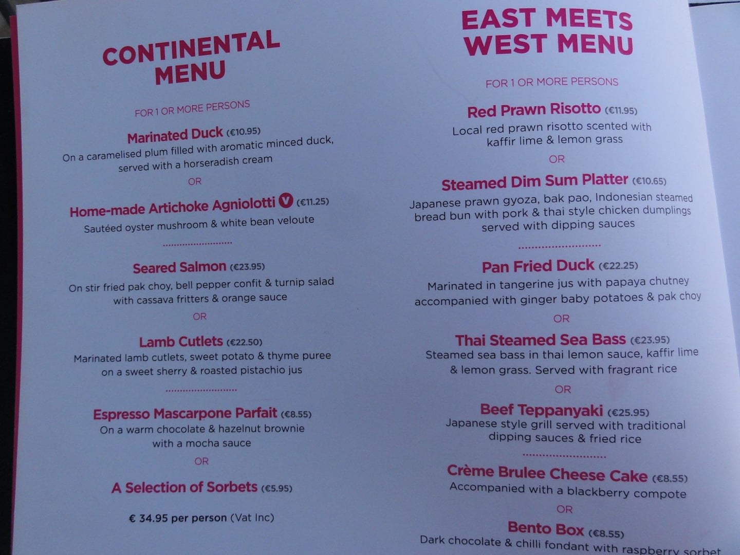 Einblick in die Speisekarte