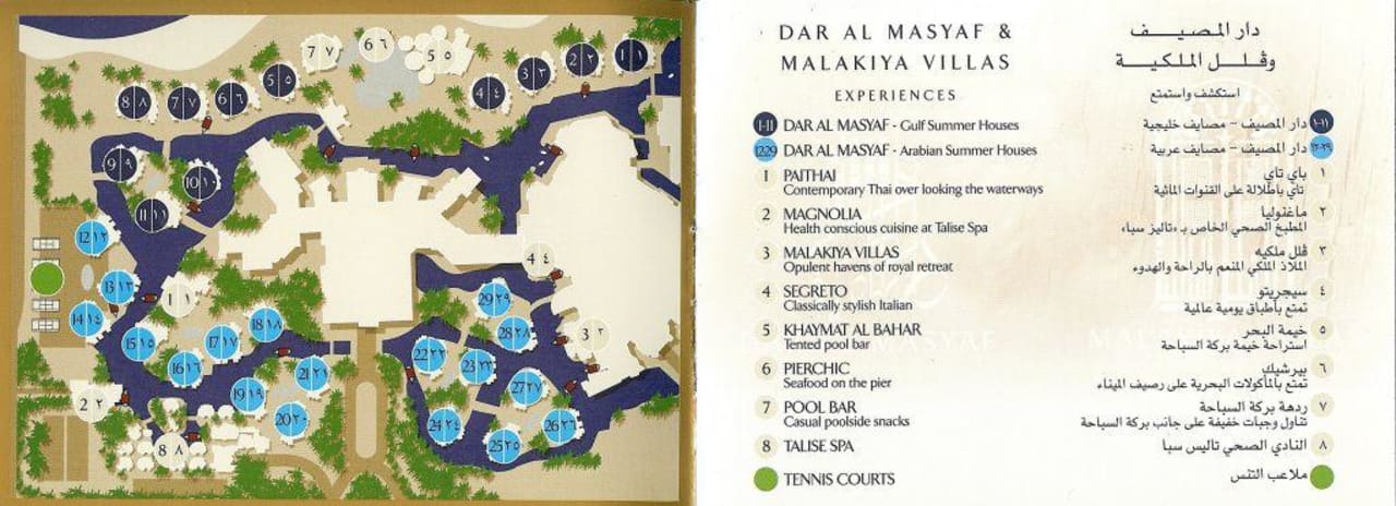 Dar Al Masyaf, Restaurant Guide, hier sind die zum Hotel gehörenden Restaurants und Bars verzeichnet. Aus dem offiziellen Resort Guide des Madinat Jumeirah.