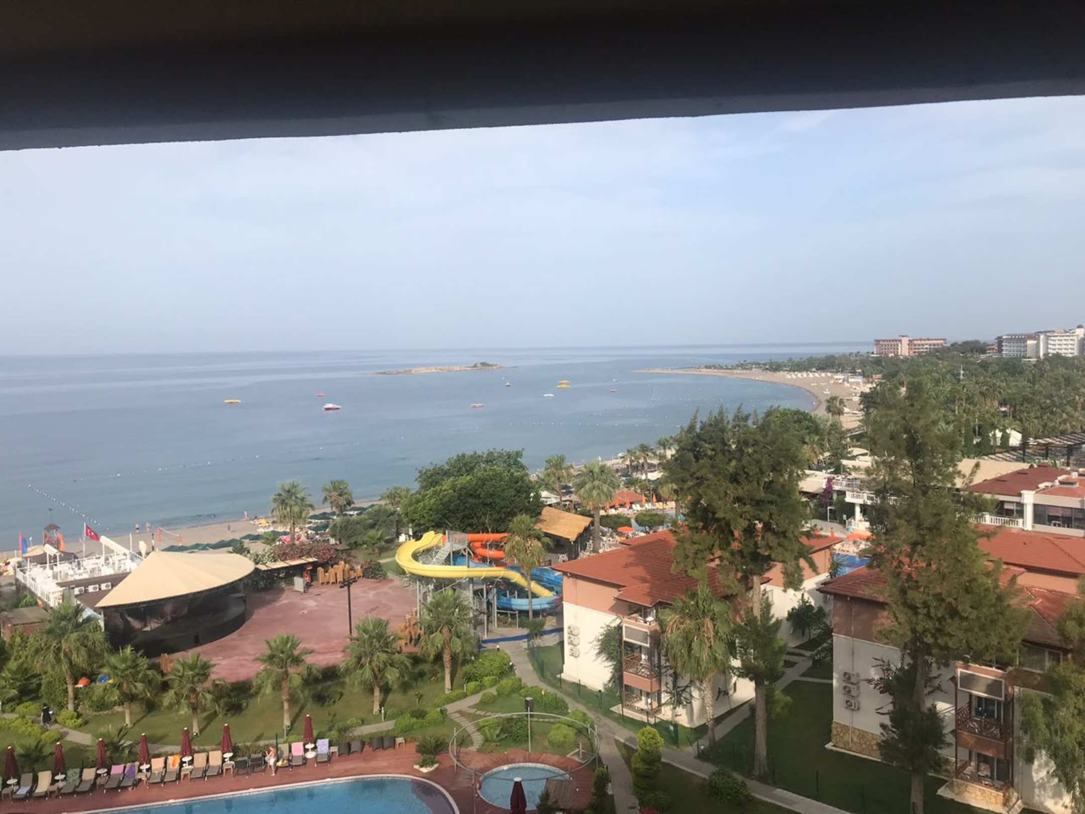 Das Meer vom Balkon aus gesehen mit Teilen der Anlage