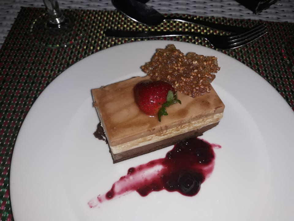 Mousse-au-Chocolat-Torte im Aubergine beim französischen Menü