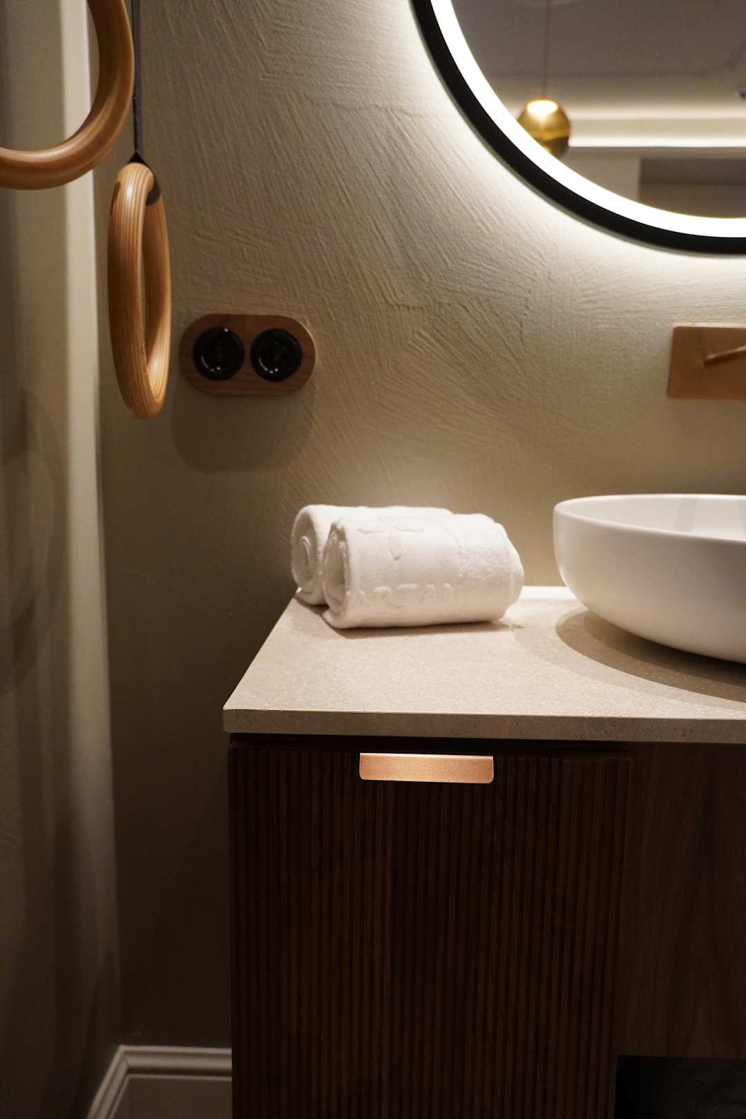 Kleine lustige details im bad , sowie die trapeze für die handtücher