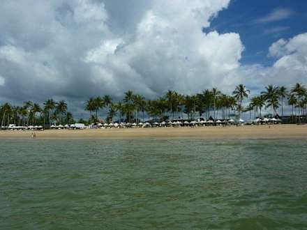 Hotelstrand vom Wasser aus aufgenommen