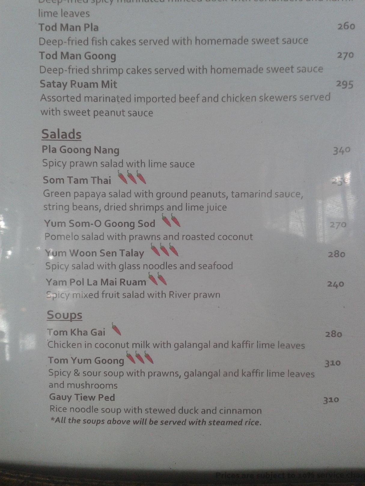 Auszug Speisekarte
