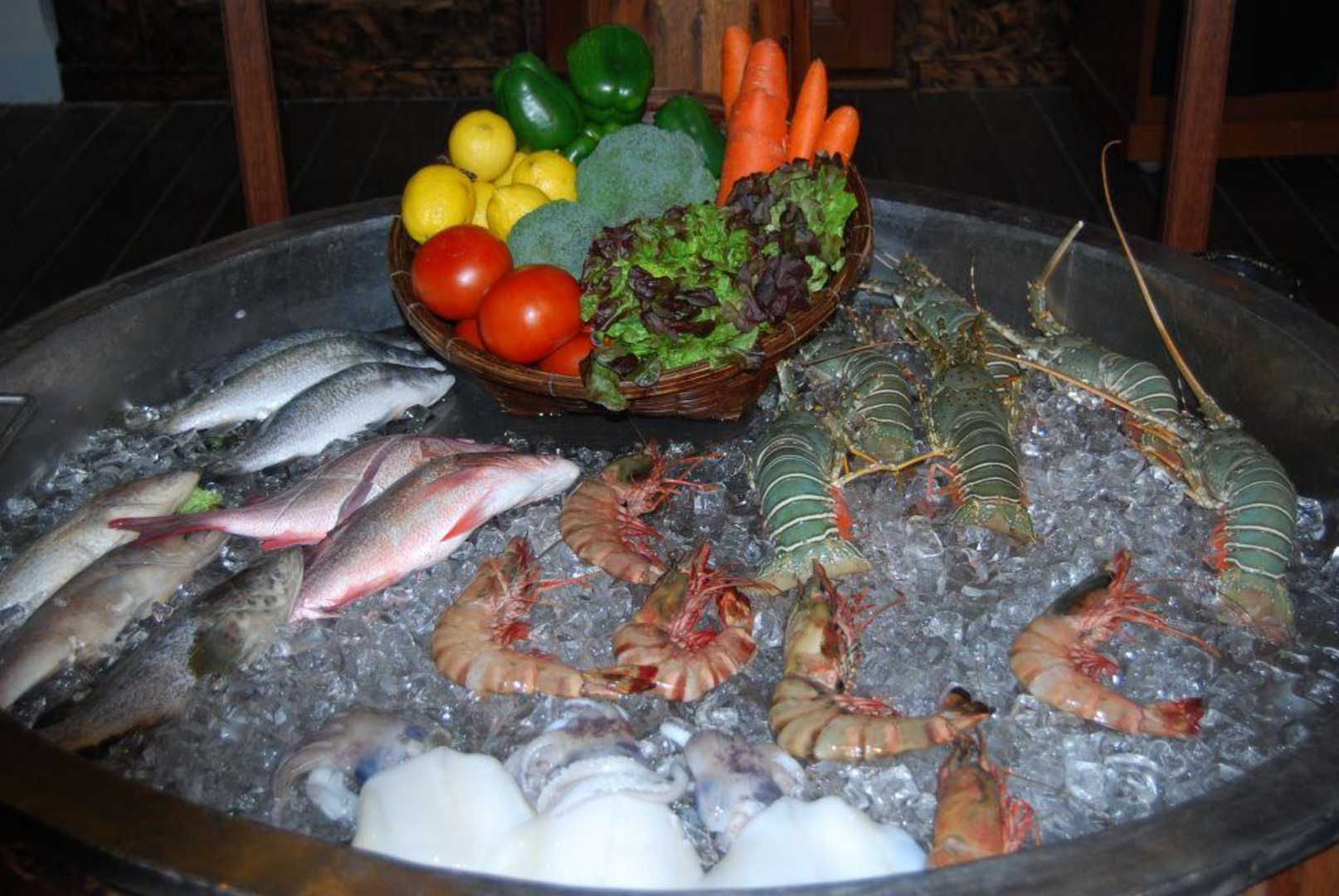 Fisch und Meeresfrüchte direckt am Eingang vom Andaman Grill.