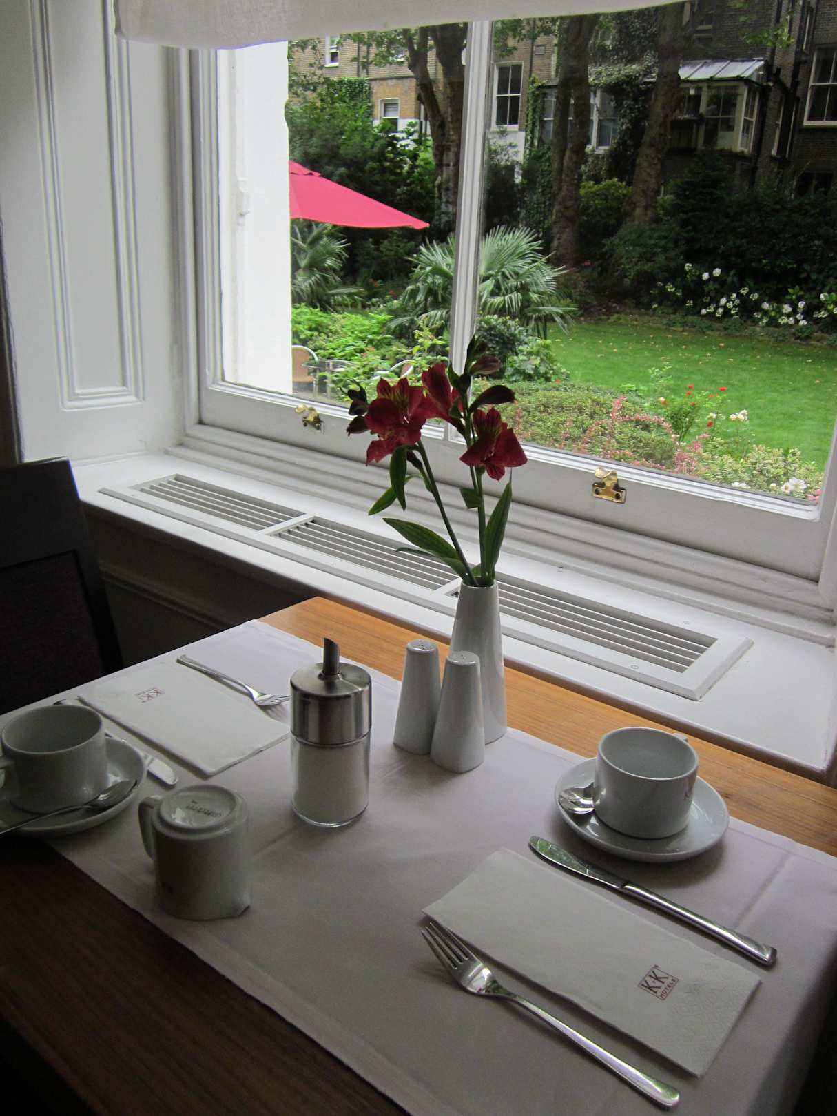 Tisch mit Gartenblick