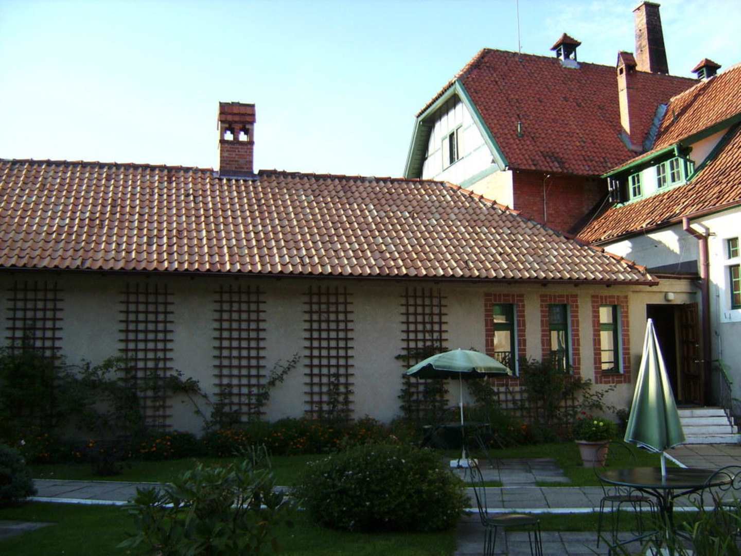 Blick vom Garten auf das Hotel