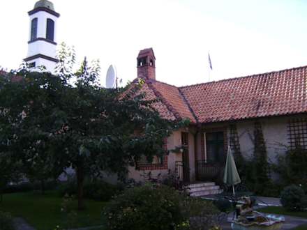 Blick vom Garten auf das Hotel