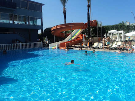 Widok na zjeżdżalnie przy basenie