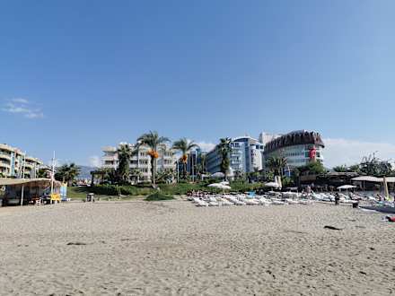 Blick vom Strand zum Hotel