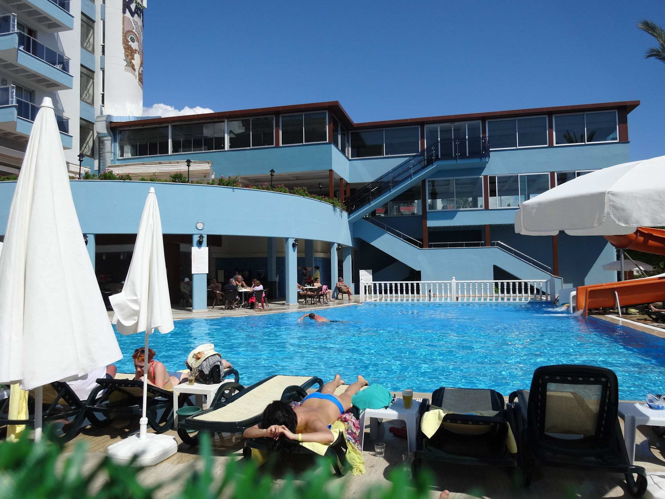 Zwembad met glijbanen en buitenbar