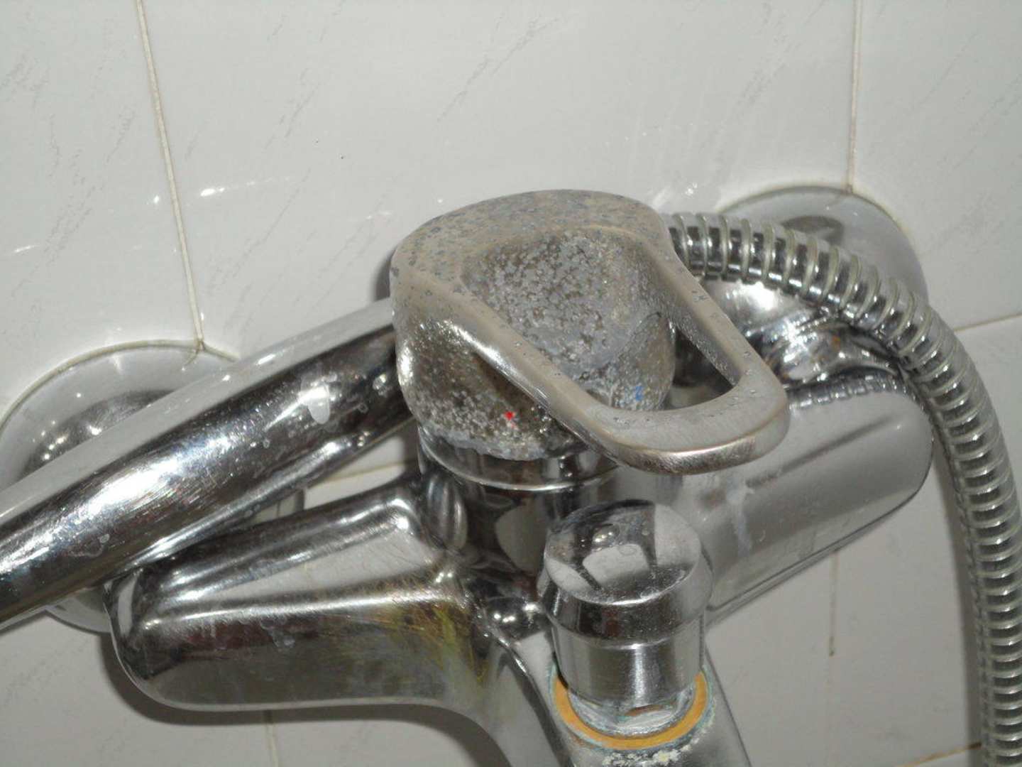 völlig verkalkten Wasserhahn und Duschkopf