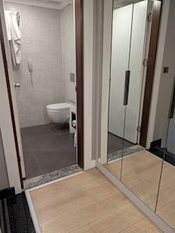 Bad/WC und Kleiderschrank Familienzimmer oben mit 2 Betten und TV