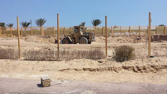 Baustelle vorm Hotel, Bagger